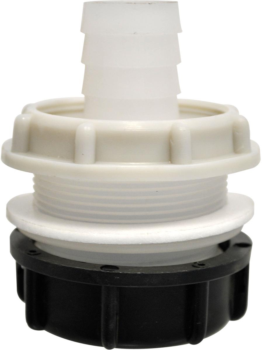 Tankanschlussstutzen mit Dichtung, Mutter und Schraubverschluss Technische Daten: Durchmesser: 50 mm Maße (L x B x H): 9,9 × 7,6 × 7,6 cm Gewicht: 85 g