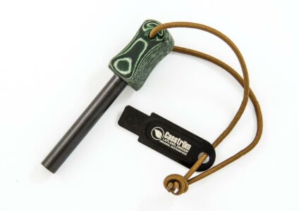 Dieser schöne Brandschutzstahl besteht aus starkem Leinen-Micarta für den Griff. Ein Feuerstahl ist ein wesentlicher Bestandteil eines jeden Bushcraft- oder Survival-Kits und dieser Feuerschlager hat echten Charakter. hochwertiger, in Europa hergestellter Ferrocerium-Stab für jedes Wetter 12000+ Schläge Durchmesser beträgt 9,5 mm (volle Armeegröße) ein elastisches Verbindungsmittel mit Schließblech wird durch ein Loch im Griff geschlungen Technische Daten: Griff: grünem Leinen-Micarta Gesamtlänge: ca….