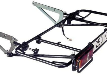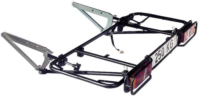 Cate Heck Grundträger, 600mm Das Transportgenie – der Cate Motorradträger für Reisemobile und Kastenwagen abklappbar, dadurch leichterer Zugang zur Heckklappe hochklappbar, wenn sie ohne Transportgut unterwegs sind Leicht abnehmbar (in 3-4 Minuten) für Motorrad, Motorroller oder bis zu 5 Fahrräder Nutzlast: je nach Fahrzeugtyp bis 300kg mit TÜV-Freigabe Notwendige Teile zur Motorradträger-Montage: 1.Grundträger Rahmen aus verzinktem Stahlrohr, mit schwarzer Pulverbeschichtung, erhältlich in 2…