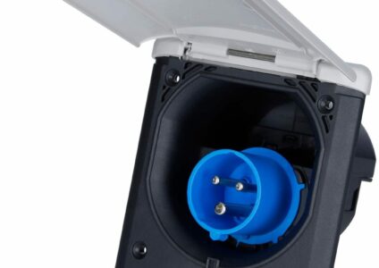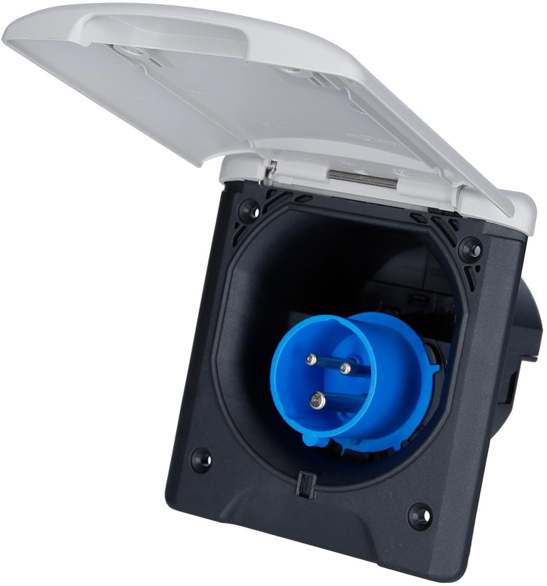 CEE-Einspeisesteckdose mit Magnetverschluss, hellgrau, 120x135mm