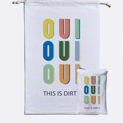 Wäschesack aus 100% zertifizierter Bio-Baumwolle mit angenähtem Beutel zur kompakten Aufbewahrung. perfekt für die Aufbewahrung von Schmutzwäscheauch ideal zum Transport von Sportbekleidung oder anderen Gegenständenpraktischer Kordelverschlusswaschbar bei 30°CbügelbarTechnische Daten:Maße: 40 x 60 cmDesign: Oui OuiGewicht: 143 g