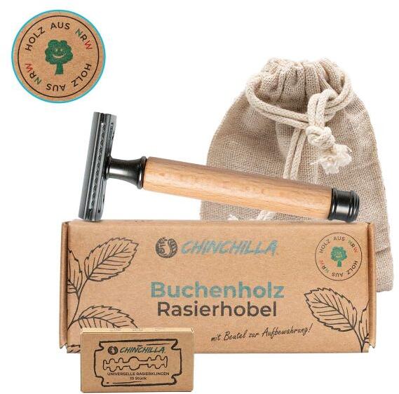 Der nachhaltige Rasierhobel ist sehr robust und hält bei richtiger Pflege jahrelang – es muss lediglich die recycelbare Rasierklinge aus Metall gewechselt werden. Plastikfrei Der Rasierhobel von Chinchilla ist die plastikfreie Alternative zu umweltbelastenden Einwegrasierern aus Plastik. Der Griff besteht aus Buchenholz, die recycelbare Klinge aus Metall. Made in Germany & nachhaltige Materialien Der Rasierhobel wird in Deutschland hergestellt. Der Holzgriff aus heimischem Buchenholz aus NRW liegt gut &…