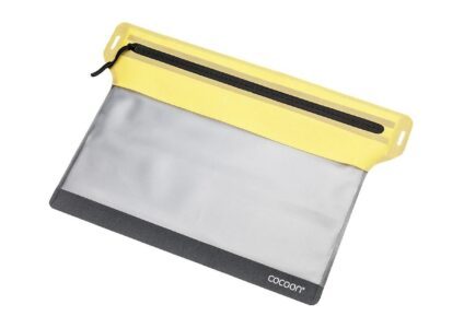 Regendichte, flache Tasche zur Aufbewahrung von Reisedokumenten, Landkarten, Smartphones, Tablets, etc… Die transparente Folie auf der Vorderseite ist touch-screen-fähig. Komplett geschweißt – keine Nähte Mit YKK Aqua Guard Water Repellent Zipper Technische Daten Maße: 27 x 22 cm Gewicht: 40 g Material: TPU laminiertes Oxford Nylon Farbe: grau/gelb Hinweis Einfach mit feuchtem Tuch auswischen.