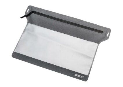 Regendichte, flache Tasche zur Aufbewahrung von Reisedokumenten, Landkarten, Smartphones, Tablets, etc… Die transparente Folie auf der Vorderseite ist touch-screen-fähig. Komplett geschweißt – keine Nähte Mit YKK Aqua Guard Water Repellent Zipper Technische Daten Maße: 32 x 25 cm Gewicht: 55 g Material: TPU laminiertes Oxford Nylon Farbe: grau/schwarz Hinweis Einfach mit feuchtem Tuch auswischen.