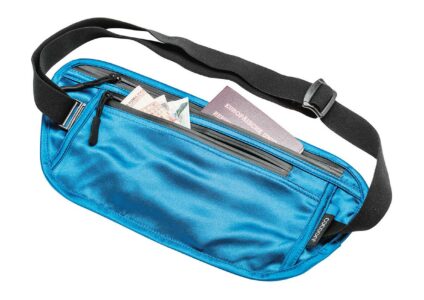 Weiche Hüfttasche für Geld und Dokumente aus 100% Seide mit wasserdichter TPU Innenlaminierung. Schützt Pass, Führerschein und Geld vor Diebstahl, Schweiß und Regen. Zwei Taschen mit YKK Aqua Guard Water Repellent Zipper Vordere Tasche RFID sicher Verstellbare, elastische Gurte Technische Daten Maße: 30 x 14 cm Gewicht: 58 g Material: 100% Seide mit TPU Laminierung Farbe: blaue Lagune Hinweis: Einfach mit feuchtem Tuch auswischen