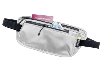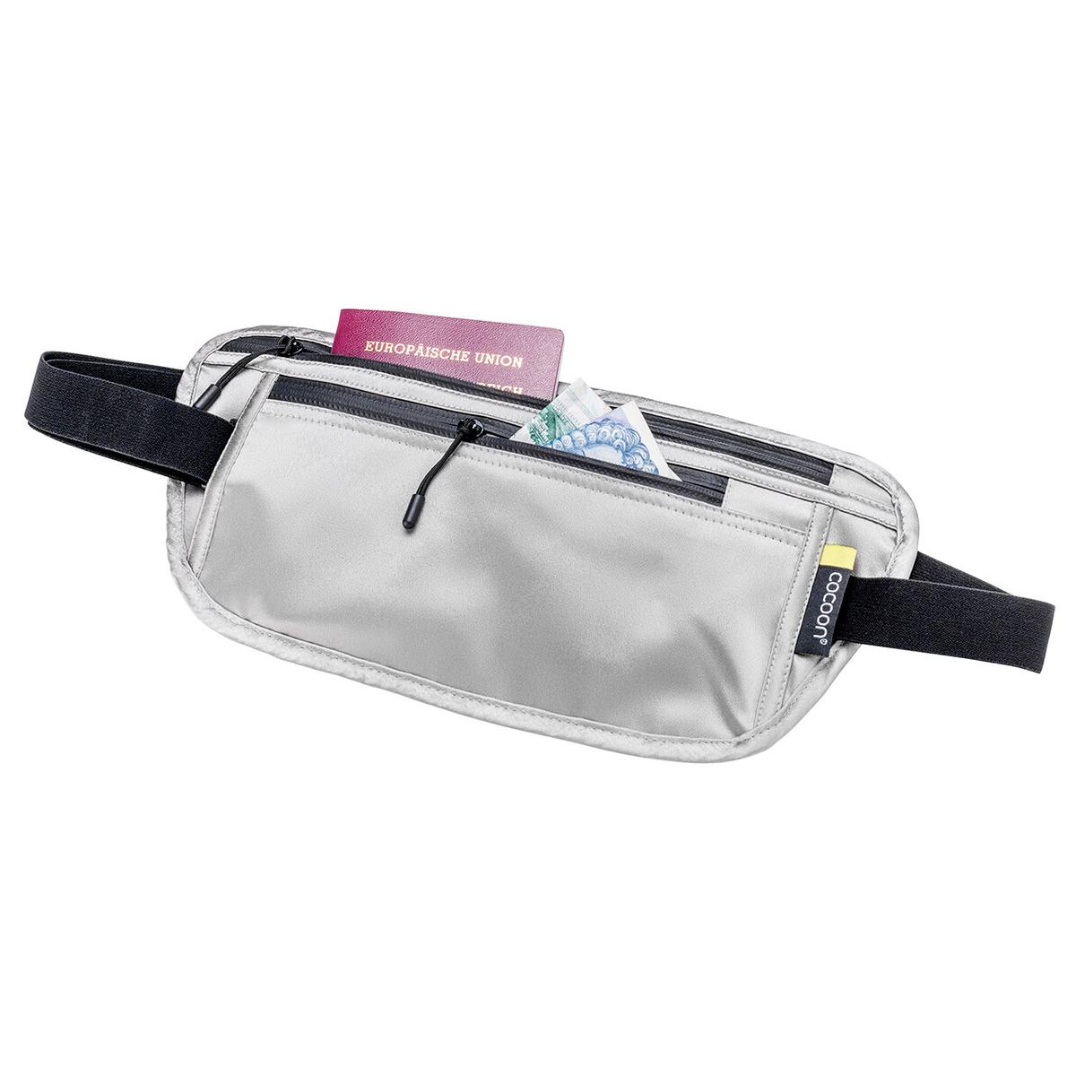 Weiche Hüfttasche für Geld und Dokumente aus 100% Seide mit wasserdichter TPU Innenlaminierung. Schützt Pass, Führerschein und Geld vor Diebstahl, Schweiß und Regen. Zwei Taschen mit YKK Aqua Guard Water Repellent Zipper Vordere Tasche RFID sicher Verstellbare, elastische Gurte Technische Daten Maße: 30 x 14 cm Gewicht: 58 g Material: 100% Seide mit TPU Laminierung Farbe: sandgrau Hinweis: Einfach mit feuchtem Tuch auswischen