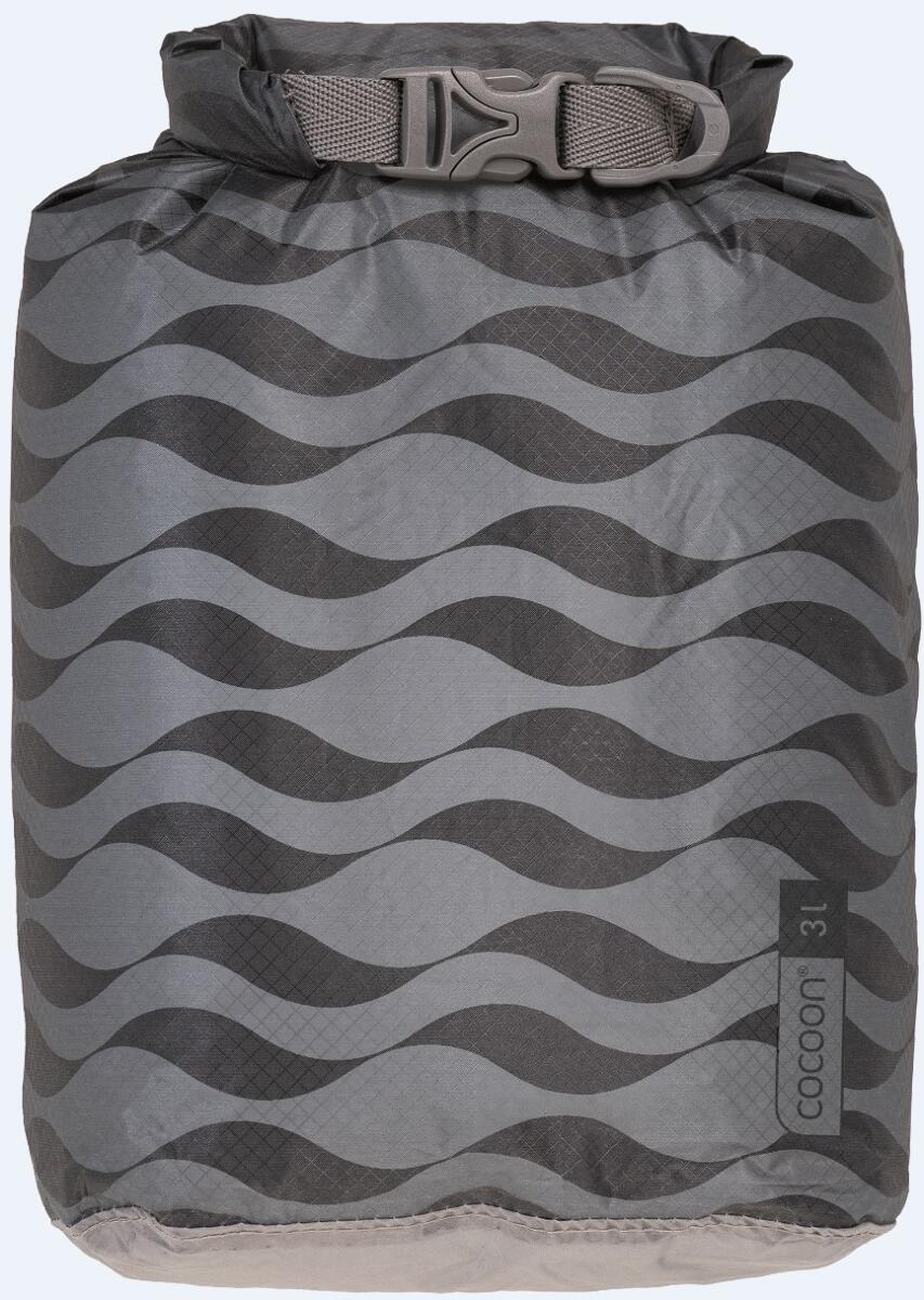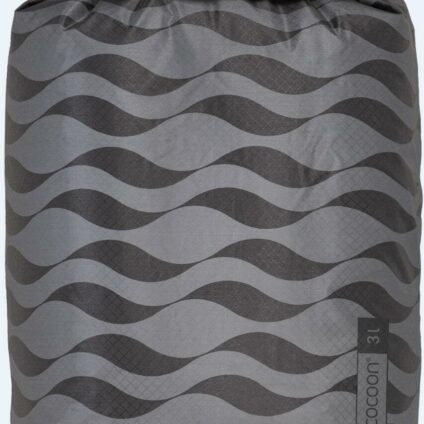 Die wasserfesten COCOON® Drybags mit Roll-Top Verschluss halten beim Wassersport empfindliche Gegenstände trocken. Im Rucksack sorgen sie für die perfekte Organisation und zusätzlichen Schutz bei starkem Regen. Ideal beim Kajakfahren, Stand-Up Paddling, Wandern und Trekking.Etwas robustere und blickdichtere Version des Drybag HyperlightTechnische Daten:Farbe: grey wavesVolumen: 3lGröße: 23 x 17 x 10 cm Gewicht: 29gMaterial: aus recyceltem 30 Denier NylonLieferumfang:1 Ultralight Drybag