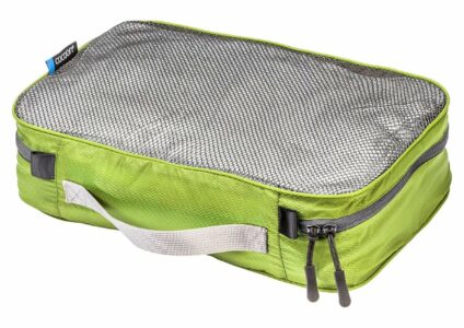 Praktischer superleichter Packing Cube aus 20 Denier Hexagonal Ripstop Nylon, der perfekt in jedes Gepäckstück passt. Mit YKK Zipper Mit luftdurchlässigem Netz auf der Oberseite Technische Daten Maße: 35 x 26 x 8 cm Gewicht: 55 g Material: 20D hexagonal Nylon Farbe: olivgrün Hinweis Bei 30° C im Schonwaschgang mit Feinwaschmittel waschen. Nicht bleichen. Nicht in den Trockner. Nicht bügeln. Keine chemische Reinigung.