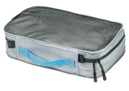 Praktischer superleichter Packing Cube aus 20 Denier Hexagonal Ripstop Nylon, der perfekt in jedes Gepäckstück passt. Mit YKK Zipper Mit luftdurchlässigem Netz auf der Oberseite Technische Daten Maße: 35 x 26 x 8 cm Gewicht: 55 g Material: 20D hexagonal Nylon Farbe: Sturm blau Hinweis Bei 30° C im Schonwaschgang mit Feinwaschmittel waschen. Nicht bleichen. Nicht in den Trockner. Nicht bügeln. Keine chemische Reinigung.