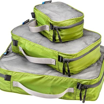 Set aus drei Packing Cubes Ultralight aus 20 Denier Hexagonal Ripstop Nylon. Perfekt für Ordnung im Reisegepäck – jede Packing Cube-Größe ist genau doppelt so groß wie die vorherige Mit YKK Zipper Mit luftdurchlässigem Netz auf der Oberseite Technische Daten Maße (3 Packbeutel): 16 x 12 x 8 cm, 28 x 18 x 8 cm, 35 x 26 x 8 cm Packmaß: 37 x 28 x 10 cm Gewicht: 120 g Material: 20D hexagonal Nylon Farbe: olivgrün Hinweis Bei 30° C im Schonwaschgang mit Feinwaschmittel waschen. Nicht bleichen. Nicht in den…