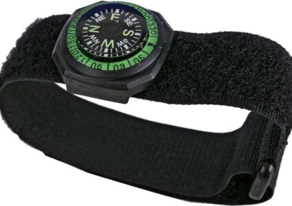 Flüssigkeitsgedämpfter Kompass mit nachtleuchtenden Ziffern, wasserdicht und stoßfest. Velcroband einstellbar. Auch mit vielen Uhrarmbändern tragbar. Technische Daten: Ø 22 mm, Rosette Ø 16 mm Gewicht: 5 g