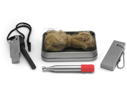 Kein Feuerzeug? Kein Problem. In diesem Feuerstarterset sind alle Utensilien vorhanden um ein Feuer ohne andere Hilfsmittel zu entfachen. Im Set enthalten sind ein Zündstahl, ein Schaber, ein Magnesiumblock, ein Blasrohr und Jute. Das Feuer kann in der Dose entfacht und dann auf eine Anzündquelle übertragen werden. Ideal für den Outdoor Enthusiasten, für das Notfallset oder Rucksack. Enthält Zündstahl, Schaber, Magnesiumblock, Blasrohr und Jute Ideal für den Outdoor Enthusiasten oder das Notfallset…