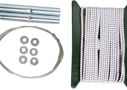 Alles, was Sie zum Reparieren von, mit Gummiseil verbundenen, Zeltstangen benötigen. Lieferumfang: 330 cm elastisches Seil 75 cm Draht (zum Einfädeln des Seils durch die Stangen) 6 Beilagscheiben 2 Reparaturhülsen, Innen Ø 10 mm
