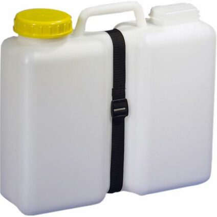 Mit Verschlussdepot, damit der Verschluss beim Einfüllen nicht verloren geht. Mit Aussparung in der Mitte des Kanisters. So kann man den Kanister bequem im Fahrzeug befestigen. mit Verschlussdepot gefertigt aus lebensmittelechtem Polyethylen Technische Daten: DIN 96 Volumen: 13 Liter Maße L x B x H: 400 x 120 x 360 mm Material: HDPE (Hart-Polyethylen) – dadurch BPA-frei Lieferumfang: Aqua Case Weithalskanister Inkl. Zurrgurt (1 m) mit Befestigungsschnalle.