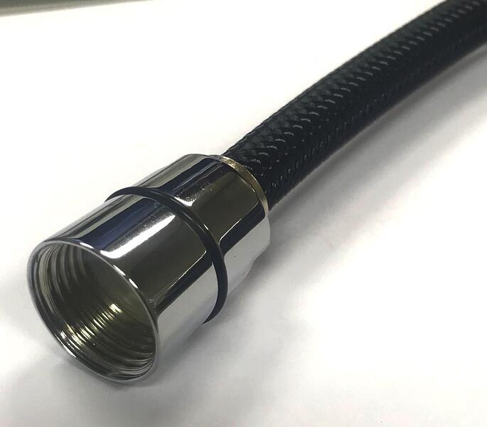 Gewebeummantelter Silikonschlauch in schwarzer Ausführung mit Überwurfmutter und Konusmutter. Technische Daten: Länge: 1.5 m Anschluss: 1/2 2. Anschluss: 1/2 Farbe: Schwarz