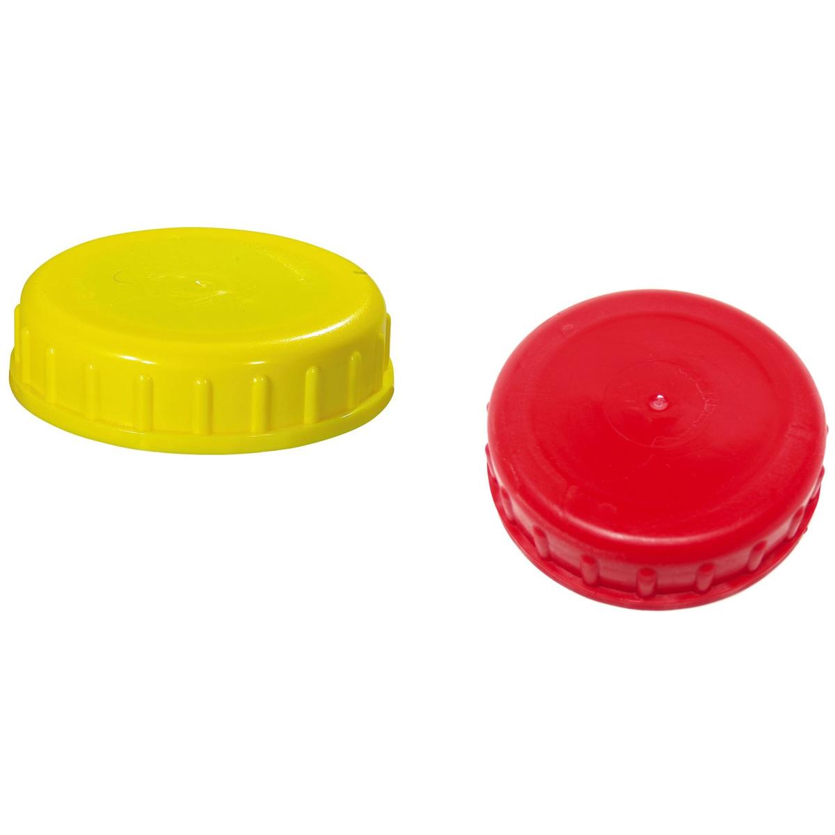 Schraubverschluss mit Dichtung. Es handelt sich um eine farbliche Sortierung, geliefert wird gelb oder rot. Technische Daten: Farbe: gelb/rot Größe allgemein: DIN 96 Nettogewicht: 44 g Packmaß: 18 x 16 x 3,5 cm