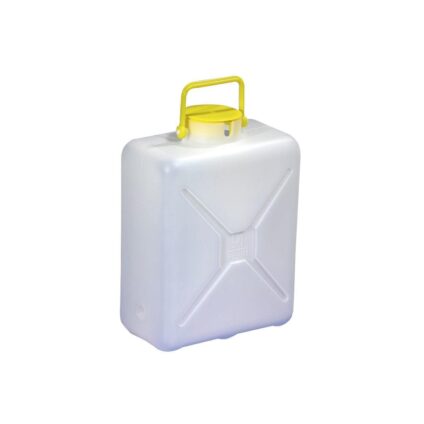Kanister mit Steckkappe und Bügelgriff. Mit Ausschnitt für Tauchpumpenkabel und Schlauch. Inklusive Gewinde 3/4 ungeöffnet, für Ablasshahn (nicht im Lieferumfang). Steckkappe mit Austritt für Schlauch/Pumpenkabel 3/4', Gewinde passend für Absperrhahn Technische Daten: Ablasshahn: – Größe: DIN 96 Tankinhalt: 13 l Hauptfarbe Weiß Material: HDPE (Hart-Polyethylen) – dadurch BPA-frei Maße (B x T x H): 280 × 155 × 380 mm Gewicht: 648 g