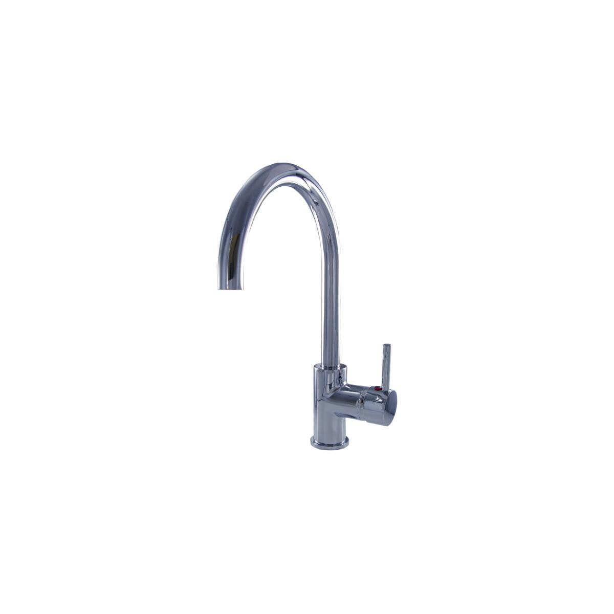 Modernes Design bei geringen Abmessungen. Zum Einsatz in Wohnwagen und Reisemobilen geeignet. Äußerst sparsamer Wasserverbrauch durch gute Regulierbarkeit von Temperatur und Durchflussmenge. Dichtung mit Keramikscheiben für beständige Qualität. Heißwasserfest bis 10 bar. Der Auslauf ist um 360° schwenkbar. Technische Daten: chrom Auslauf: 20 cm, 360 °drehbar Höhe: 335 mm / 210 mm unter Auslauf Anschluss: Metallflexschläuche Ø 10 mm 250 mm lang Montagebohrung: Ø 38 mm Lieferumfang: Einhebelmischer…