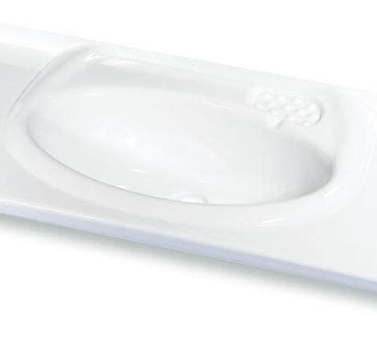 Einbauwaschbecken mit ovaler Mulde, beliebig kürzbar, Material: Polystyrol glänzend weiß, Ablagenbreite: 270 mm. Muldentiefe: 160 mm. Maße (B x T x H): 900 × 325 × 160 mm