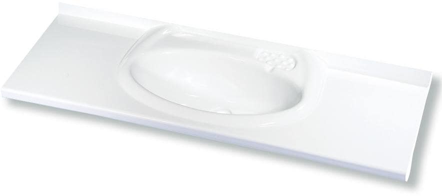 Einbauwaschbecken mit ovaler Mulde, beliebig kürzbar, Material: Polystyrol glänzend weiß, Ablagenbreite: 270 mm. Muldentiefe: 160 mm. Maße (B x T x H): 900 × 325 × 160 mm
