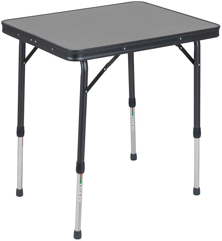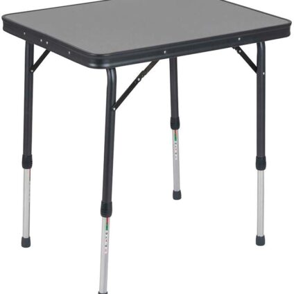 Leichter und sehr stabiler Campingtisch mit stufenlos verstellbaren Beinen und einer hitzebeständigen, wasserfesten Tischplatte aus Melamin.mit Aluminiumrahmenwasser- und kratzfeste sowie hitzebeständige Tischplattelässt sich stufenlos von 48 bis 74 cm verstellenäußerst stabil und kompaktTechnische Daten:Traglast: 50 kgFarbe: schwarz, grauMaterial: Aluminium, MelaminMaße: 53 x 48 – 74 x 65 cm (B x H x T)Packmaß: 67,5 x 55,5 x 6 cm (B x H x T)Gewicht: 3,5 kg