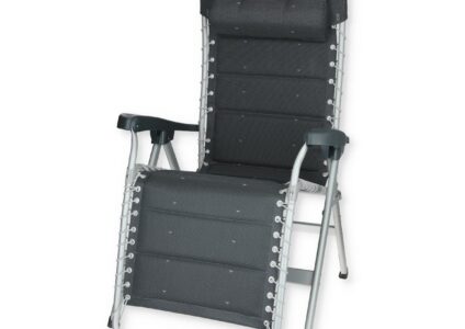 Die Liege mit einem verstärkten Aluminiumgestell bietet eine stufenlos verstellbare, ergonomisch geformte Rückenlehne. Das mitgelieferte Kopfpolster ist höhenverstellbar. Zudem hat sie ein sehr geringes Packmaß und Sie erhalten zu dieser Liege kostenlos eine praktische Tragetasche dazu. Technische Daten Material: 60 % PVC Polyvinylchlorid, 40 % PES Polyester belastbar bis: 130 kg Möbeltyp: Relaxsessel Farbe: anthrazit Sitzhöhe: 82 cm Maße (B x T x H): 71 × 81 × 119 cm Packmaß: 95 x 71 x 14,5 cm Gewicht:…