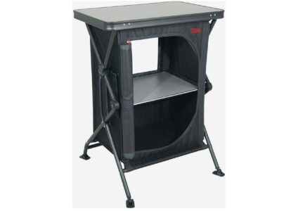 Ein sehr stabiler Campingschrank. Durch das einzigartige Ein- und Ausklappsystem ist dieser Schrank sehr einfach und schnell aufzustellen! Dieser Schrank verfügt über eine hitzebeständige und wasserfeste Abdeckplatte aus grauem Melamin und einen Aluminiumrahmen mit Schutzkanten. Die Hülle besteht aus extra stabilem 400D Polyester mit praktischen Einlegeböden, Seitentaschen und einem Netzfenster. Die verstellbaren Beine sind individuell einstellbar. Der Schrank hat spezielle Stabilisierungsfüße, so dass…