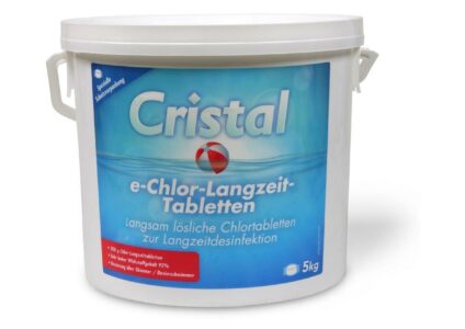 Die langsam löslichen Chlor-Langzeit-Tabletten wirken über lange Zeit gegen Bakterien, Viren und Pilze im Poolwasser und bauen organische Trübstoffe und Verunreinigungen ab. Die Chlor-Langzeit-Tabletten sind bei allen Wasserhärten einsetzbar, lösen sich rückstandsfrei auf und führen nicht zu Ablagerungen oder verstopften Filtern. hohe Leistungsreserve und sehr hoher Aktivchlor-Gehalt für die zuverlässige Langzeitchlorung konstant, langsam und rückstandsfrei löslich stabilisierende Wirkung Technische…