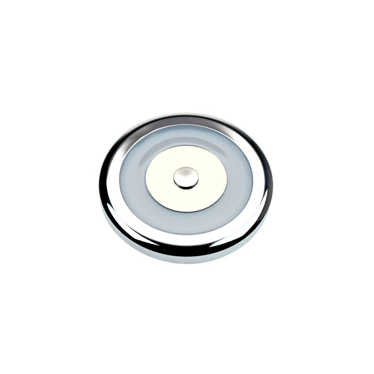 Farbtemperatur: warmweiß 3000 K integrierter Touch-Dimmer sehr flache Bauform keine Lichtpunkte Verpolungsschutz Technische Daten: Typ: LED42PALRTD Farbe: chrom Abstrahlwinkel: 110° dimmbar: Ja Energieeffizienzklasse: G IP-Schutzklasse: IP42 LED: Ja Lichtstrom in Lumen: 400 lm Nennleistung: 6,2 W Nennspannung: 10 – 30 V Material: Aluminium Höhe: 7 mm Durchmesser: 106 mm Nettogewicht: 90 g Packmaß: 32 x 26 x 26 cm