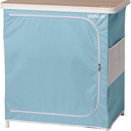 Campingschränke sind die ideale Lösung für mobile Aufbewahrung und helfen dabei, Ordnung und Komfort während Ihrer Abenteuer in der Natur zu schaffenVorratschrank mit Smart BausystemZwei FächerOrganizertaschen auf beiden SeitenEinfacher AufbauTechnische Daten:Breite: 75 cm Tiefe: 48 cm Höhe: 80 cmFarbe: Pastellblau