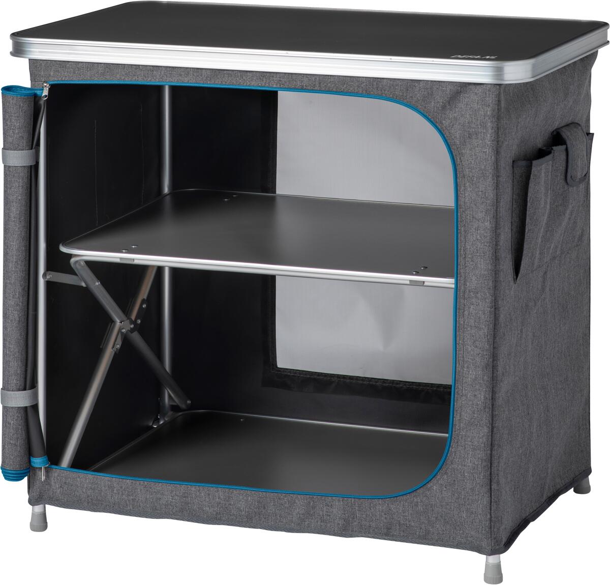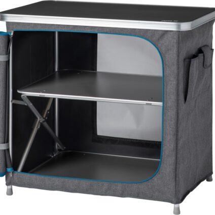 Der Vorratsschrank ist eine praktische Aufbewahrungslösung, die ideal ist, um Lebensmittel und Küchenutensilien übersichtlich zu organisieren und jederzeit griffbereit zu haben.Vorratsschrank mit Smart BausystemZwei FächerOrganizertaschen auf beiden SeitenEinfacher AufbauTechnische Daten:Farbe: Jeans Grau100 cm breit, 100 cm hochEnthält Oberplatte und RegalbödenBlaue Akzente an den Reißverschlüssen.Lieferumfang:VorratsschrankTragetasche
