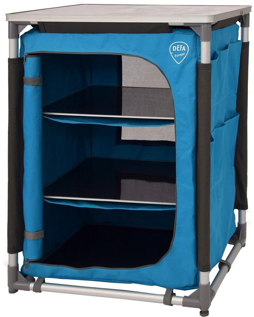 Die neue Campingschrank-Linie von DEFA zeichnet sich durch farbenfrohes Design und eine zeitgemäße Konstruktion aus. Ein vormontiertes Außengestänge, auf das ein hochwertiger Bezug aufgezogen wird, bildet das Gerüst für die wahlweise in den Farben lime, aqua oder pink gehaltenen Schränke. In dem rückseitigen Bezug ist eine Lüftungsgaze eingearbeitet. Die mit Aluminiumkante verstärkten Ablageböden werden einfach in die Regalträger eingelegt. Diese sind mit Reißverschlüssen versehen, so dass die…