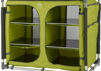 Die neue Campingschrank-Linie von DEFA zeichnet sich durch farbenfrohes Design und eine zeitgemäße Konstruktion aus. Ein vormontiertes Außengestänge, auf das ein hochwertiger Bezug aufgezogen wird, bildet das Gerüst für die wahlweise in den Farben lime, aqua oder pink gehaltenen Schränke. In dem rückseitigen Bezug ist eine Lüftungsgaze eingearbeitet. Die mit Aluminiumkante verstärkten Ablageböden werden einfach in die Regalträger eingelegt. Diese sind mit Reißverschlüssen versehen, so dass die…