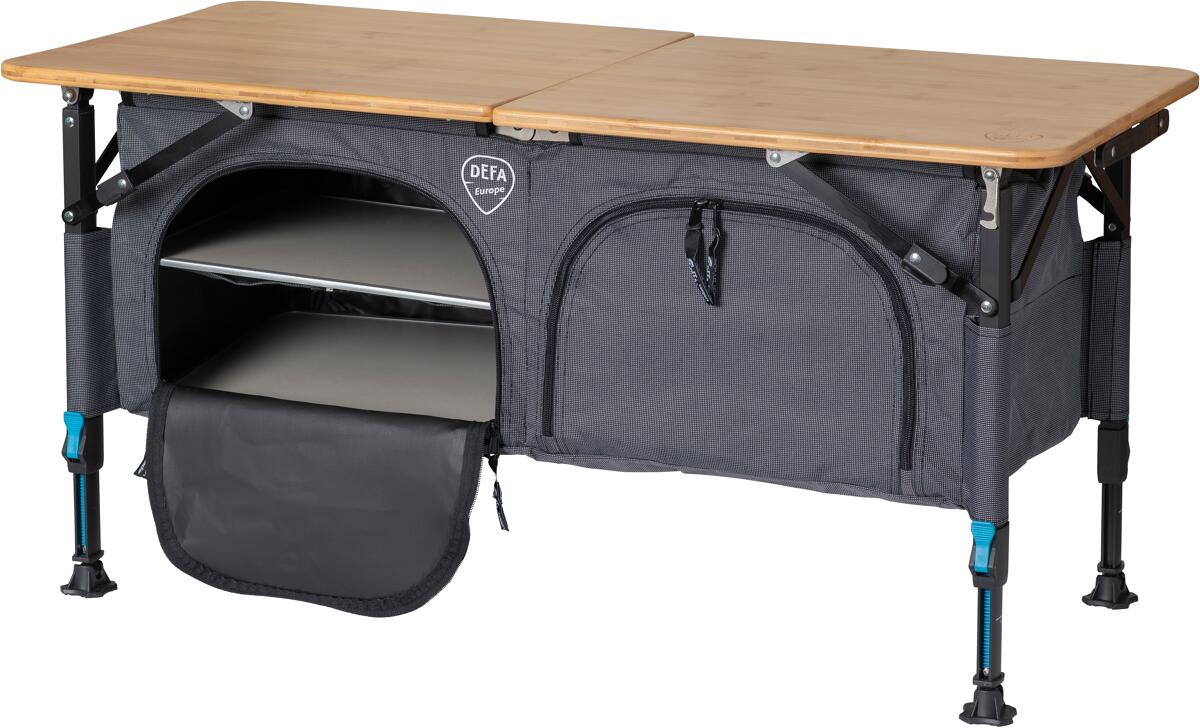 Couchtisch/Schrank mit einer Platte aus Bambus. Die Einlegeböden sind mit Aluminium ausgekleidet.Leicht aufzustellenTechnische DatenMaße (B x L x H): 100 x 45 x 35/45 cmPackmaße (B x T x H): 51 x 53 x 25 cmMaterial: Polyester, Bambusplatte Einlegeböden: AluminiumGewicht: 13,50 kgFarbe: grauLieferumfang: Couchtisch / Schrank