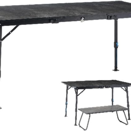 Großer oder kompakter Esstisch mit Couchtisch in einem.Hitzebeständige PlatteVerstellbare FüßeTechnische Daten:Maße: 155 x 78 x 43,5/80 cmTisch für 4-6 PersonenMaterial: AluminiumGewicht: 12,90 kgLieferumfang:TischTragetasche
