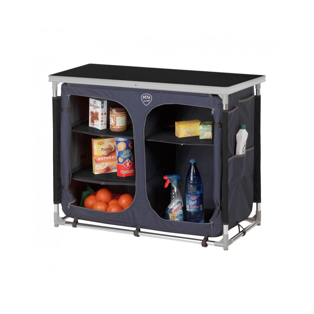 Faltbarer Vorratsschrank mit 4 Innenablagen, einer Deluxe-Arbeitsplatte und Organizer-Taschen für zusätzlichen Stauraum. Schnell auf- und abbaubar. mit 4 Innenablagen mit Deluxe-Arbeitsplatte mit Organizer-Taschen Technische Daten: Gewicht: 9,3 kg Größe: 92 x 47 x 82 cm Material: Polyester Farbe: dunkelblau
