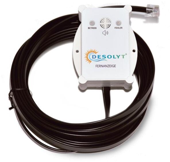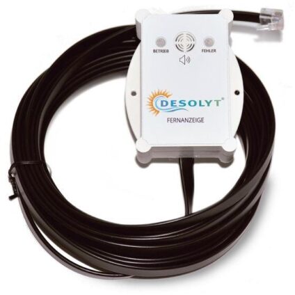 Bei verdecktem Einbau der DESOLYT IQ-Modelle, z. B. im Doppelboden, ist es unter Umständen nicht möglich die Betriebs- und Statusanzeigen des Geräts zu beobachten. Hier hilft die DESOLYT Fernanzeige. Die kleine Bauform der Fernanzeige erleichtert das Anbringen an einer geeigneten Stelle im Sichtbereich und ermöglicht so eine optimale optische und akustische Kontrolle der Desinfektion. Einfache Steckbuchse auf den IQ Geräten. Technische Daten: Farbe: weiß Kabellänge: 5 m Nennspannung: 10 – 16 V…