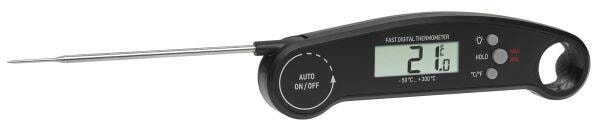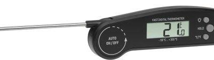 Dieses handliche Küchenthermometer zum Einklappen von TFA eignet sich ideal für die unkomplizierte Temperaturmessung von Speisen und Getränken. Nutzen Sie es als Fleischthermometer, um die Kerntemperatur beim Grillen oder Braten zu ermitteln, zum sicheren Temperatur-Check von Babynahrung, für die temperaturgenaue Zubereitung von Leckereien aus Zucker und Schokolade, beim Einkochen von Marmelade oder um die Trinktemperatur von Wein und Getränken zu überprüfen. Temperaturen von Nahrungsmitteln jeglicher…