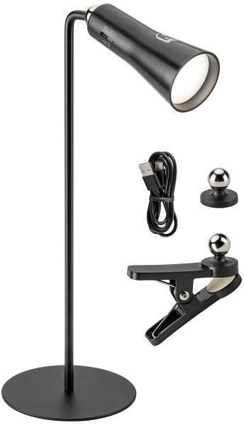 Dimatec Akku Tischlampe mit Clip, schwarz