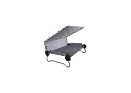 Ob zuhause, auf Balkon, Terrasse, im Garten oder unterwegs im Urlaub auf dem Campingplatz oder im Hotel: der neue Schlaf- und Rastplatz für kleine & große Hunde jeder Rasse und Gewichtsklasse (bis 91kg belastbar) bietet erhöhten Komfort und Schutz vor kaltem, schmutzigem und nassen Boden. Außerdem hat er ein Sonnendach, welches Ihren Liebling vor Sonnenstrahlen und Hitze schützt. Das Bett kann natürlich auch ohne Dach verwendet werden. Der Bezug ist aus waschbarem und wasserabweisendem Material, welches…