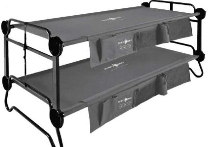 Mit viel Komfort auf wenig Raum stattet Disc-O-Bed das Base Camp aus. Speziell für Outdoor-Fans entwickelt, ist es die perfekte Wahl um mehr Leute im Zelt unterzubringen. nutzen Sie es als Etagenbett, Sitzbank oder als zwei Feldbetten der runde Rahmen versinkt nicht im Untergrund schmutzabweisende und reissfeste Matte Seitentaschen für schnellen Zugriff auf Ihre persönlichen Sachen robuster Stahlrahmen sorgt für enorme Langlebigkeit des Disc-O-Beds Technische Daten: Gewicht: 27 kg Maße: 208 x 82,5 x 29…