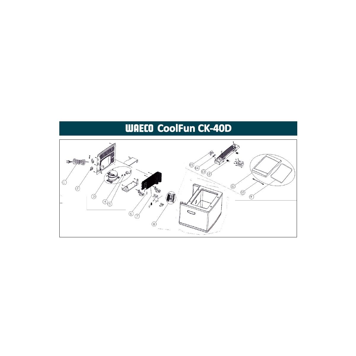 Ersatzteil für den Waeco CoolFun CK-40D. Ersichtlich in Nummer 12 im Bild. Dometic Teilenummer: 4450003516
