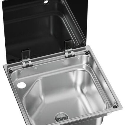Mit Abdeckung aus temperaturbeständigem Sicherheitsglas. Das Spülbecken ist aus hochwertigem Edelstahl und leicht zu reinigen. mit Bohrung ø 39 mm für WasserhahnTechnische Daten:Typ: CVS 1350GAusschnitt Nennmaß: 33,2 x 33,8 cmEinbautiefe: 17 cmBreite: 35 cmTiefe: 35 cmNettogewicht: 2,5 kgLieferumfang:1 Spülbecken inkl. Ablaufarmatur und Dichtung
