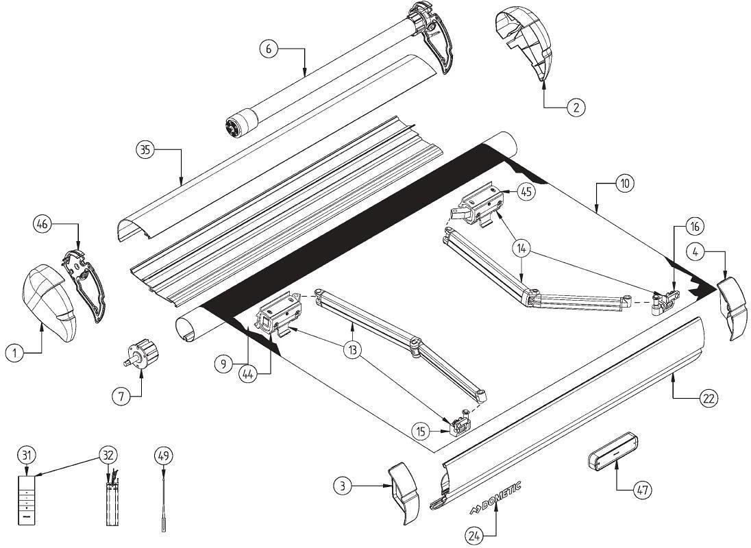 Technische Daten: Typ: Dometic Perfect Roof 4500 (rechts) Farbe: weiß Dometic Ersatzteil-Nr. 4470000538 Abbildung Nr. 2