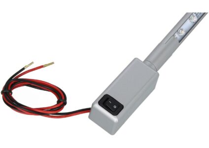 Elegantes Design, zum Einsatz als Lese-Leuchte oder im Einstiegsbereich, der Mittelteil zwischen den beiden Halterungen ist drehbar. Technische Details: Eingangsspannung 8 – 16 Volt DC Leistung 1,2 Watt Leuchtmittel Radial-Dioden Lichtfarbe warmweiß Material Kunststoff, Aluminium Abmessungen (BxHxT) 470 x 20 x 20 mm Gewichteter Energieverbrauch [kWh/1000h]: 1 Energieeffizienzklasse: G