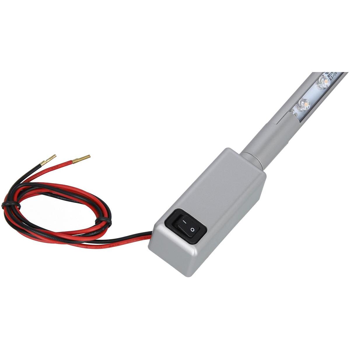 Elegantes Design, zum Einsatz als Lese-Leuchte oder im Einstiegsbereich, der Mittelteil zwischen den beiden Halterungen ist drehbar. Technische Details: Eingangsspannung 8 – 16 Volt DC Leistung 1,2 Watt Leuchtmittel Radial-Dioden Lichtfarbe warmweiß Material Kunststoff, Aluminium Abmessungen (BxHxT) 470 x 20 x 20 mm Gewichteter Energieverbrauch [kWh/1000h]: 1 Energieeffizienzklasse: G