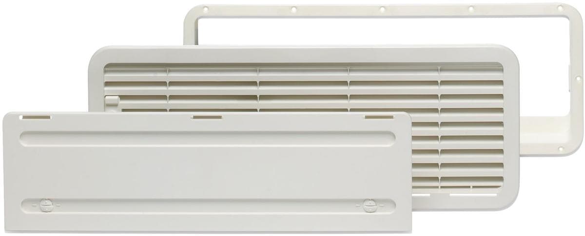 Ein spezielles Lüftungsgitter vermeidet Hitzestau um den Kühlschrank. An die Außenwand des Fahrzeugs zu montieren. Vorgesehen für Einzeltür-Kühlschrankmodelle Belüftung: 350 cm² Maße: B480 x H180 mm Farbe: weiß Lieferumfang:Set bestehend aus Einbaurahmen, Lüftungsgitter und Winterabdeckung WA130