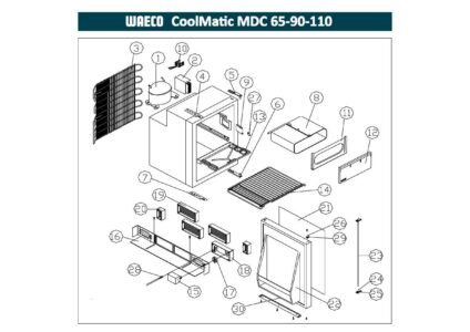 Türverriegelungsstange für die Waeco CoolMatic MDC 65-90-110. Ersichtlich in Nummer 23 im Bild. Dometic Teilenummer: 207559102