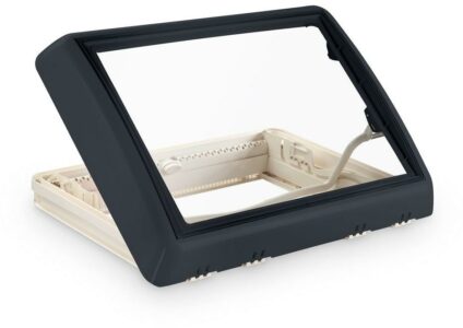 Dometic Midi Heki Style Dachhaube – 700x500mm, grau, mit Bügel, ohne Zwangsbelüftung Das Dometic Midi Heki Style hat eine Kuppel im neuartigen Design aus doppelter Acrylverglasung. Es steht für eine verbesserte Isolierung und eine optimale optische Integration im Fahrzeug. Mit dem verbesserten Design lässt sich das Midi Heki Style leichter reinigen und verursacht dank optimierter Aerodynamik bis zu 20 % (3 dB) weniger Lärm. Ein Innenrahmen mit individuell verstellbarer Plissee Verdunkelungsblende und…