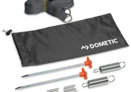 Mit dem Dometic TieDown Kit können Markisen mit Stützbeinen fest am Boden verankert werden. Die verstellbaren Spanngurte, robusten Schnallen und Spiralfedern eignen sich perfekt für windige Tage. Eine einfache Anwendung für sicheren Halt. Verstellbare Gurte und robuste Verschlüsse– genau richtig für windige Tage Einfache Handhabung, absolutsichere Fixierung Spiralfedern entlasten bei Wind Inklusive Gurtband, Heringen, Dämpfungsfedern und Packsack